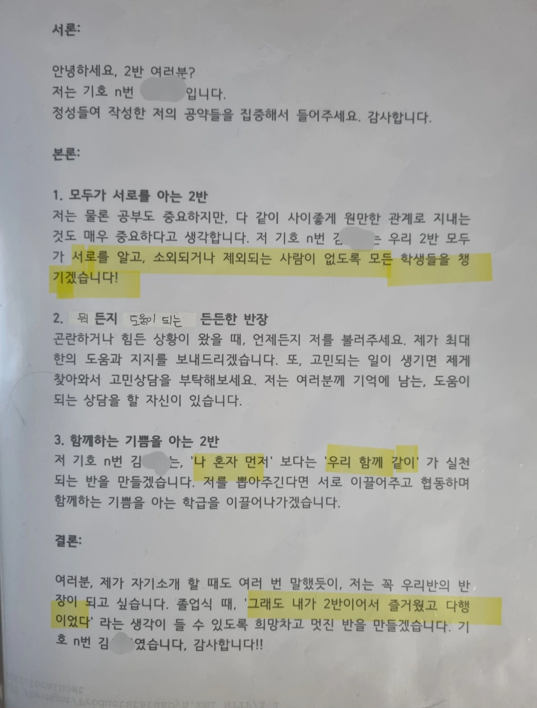 딸이 공약으로 세운 '나 혼자 먼저'보다는'우리 함께 같이'라는슬로건처럼 반짝반짝 빛이 나는 같은 반친구들과 딸을 진심으로 응원합니다.