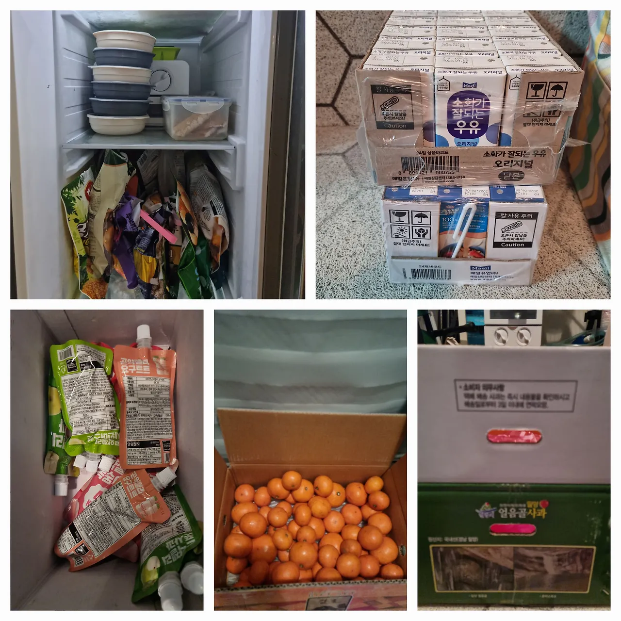 방학만큼은 어쩔 수 없이 손이 커질 수밖에 없고, 만일을 대비해 급할 때 먹을 수 있는 기한이 긴 식품들도 챙겨둔다.