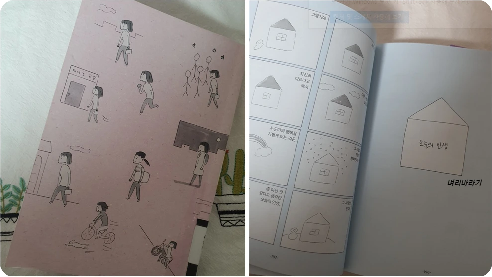 제일 좋았던 것은 ‘수짱(주인공)’이 등장하는 만화들이다. 어린이집 조리사인 수짱의 연애, 결혼하지 않아도 괜찮을까 고민하는 그런 이야기들이 너무 좋아서, 마스다 미리의 책들을 모조리 읽곤 했었다. 30대 중반의 여자가 느낄만한 이야기들, 일본의 문화와 풍경이 고스란히 전해지는 이야기들이 마음에 들었고, 부모님과의 관계, 일터에서 만나는 사람들의 이야기, 참 선한 이웃의 이야기들이 나는 좋았다. 짧은 컷의 단순한 그림체도 좋았다. 그래서 2023년도가 시작되는 지금, 제일 처음 꺼내 든 책이 바로 마스다 미리의 ‘오늘의 인생’이다.