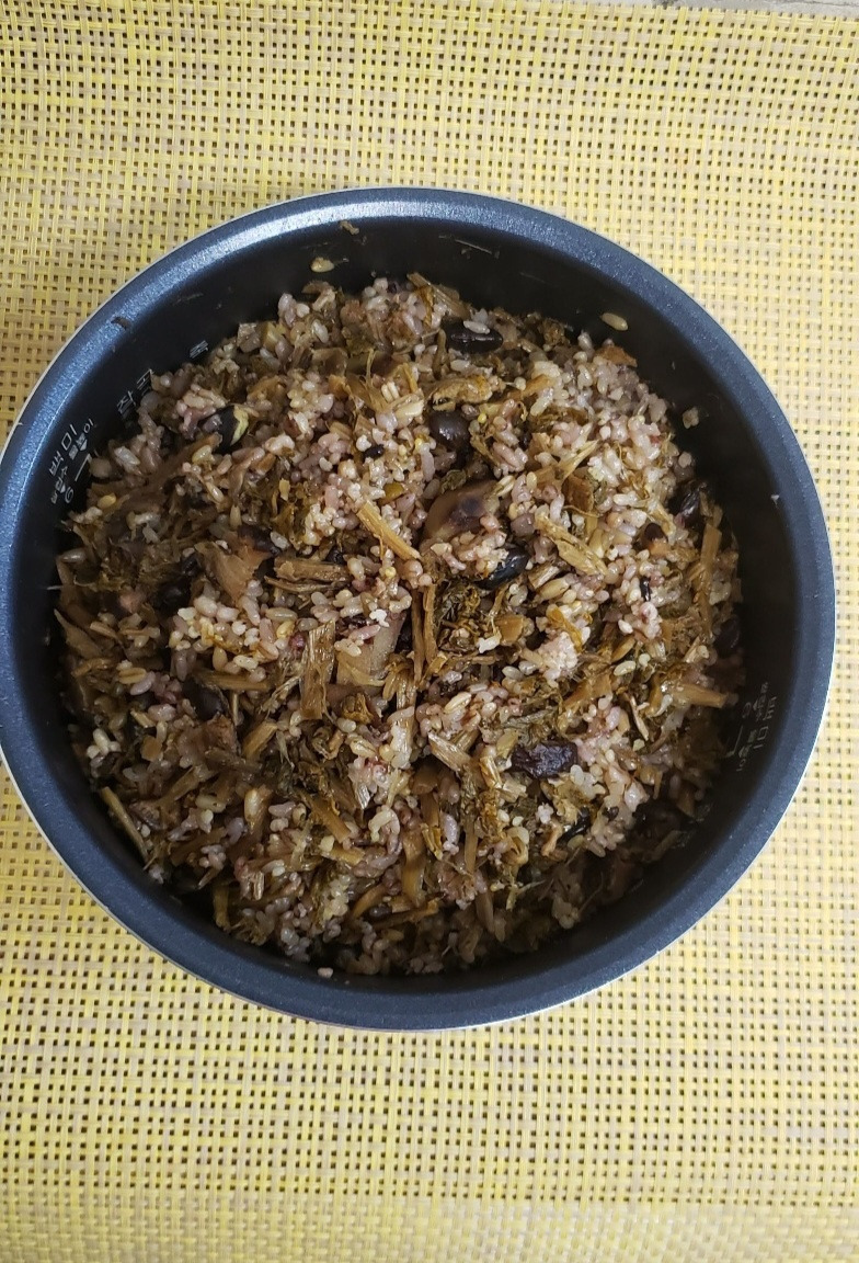 냉동고 한쪽, 얌전히 자리 잡고 있는 삶은 시래기 표고버섯 그리고 밤이 생각났다. 냉큼 꺼내서 렌지에 넣고 해동 모드로 돌린다. 쌀을 씻고, 멸치와 무 다시마로 육수를 낸다. 눈은 초롱초롱 빛나고 두 손은 보이지도 않을 만큼 빛의 속도로 움직인다. 나는 없고 손만 있는 상황이다. 해동된 시래기와 버섯을 물로 씻어 손으로 ‘꾹’ 짠다. 이에 들기름과 국 간장으로 조물조물 무쳐 놓는다. 밥솥에 불린 쌀을 넣고 거리를 살포시 쌀 위에 얹어놓는다. 밤도 곁 드려서, 물(육수)의 양은 평소 밥물의 양보다 적게 잡는다. 시래기 밥의 생명은 ‘고슬고슬’ 이니까. 밥 짓는 동안, 간장 파 마늘 땡초 고춧가루와 들기름을 넣어 양념장을 만든다. 다~됐다. 먹기만 하면 된다.