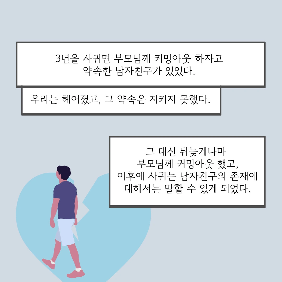 <3년을 사귀면 부모님께 커밍아웃 하기로 했잖아> 제목으로 발행하고 싶었지만, 글자수 제한이 있어서 안되네요.