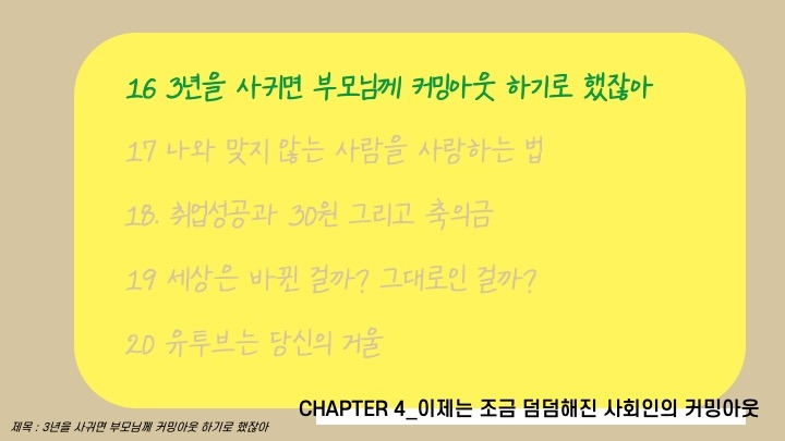 - 응, 그래. 커밍아웃. 그때쯤 하지 뭐.