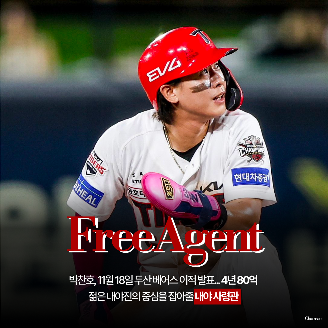 지난 18일 KIA 타이거즈 유격수 박찬호의 두산 베어스 이적 소식이 전해졌습니다. 계약 규모는 4년 총액 80억(계약금 50억, 연봉총액 28억). 이번 시즌 9위를 기록하며 부침을 겪은 두산 베어스는 모기업과 구단 모두 스토브리그에서의 적극적인 행보를 예고했는데 그 의지를 가장 잘 보여준 계약이 아닐까 생각합니다. 그렇다면 과연 두산 베어스가 박찬호 선수와의 동행을 결심한 계기는 무엇이었을지 알아보겠습니다.