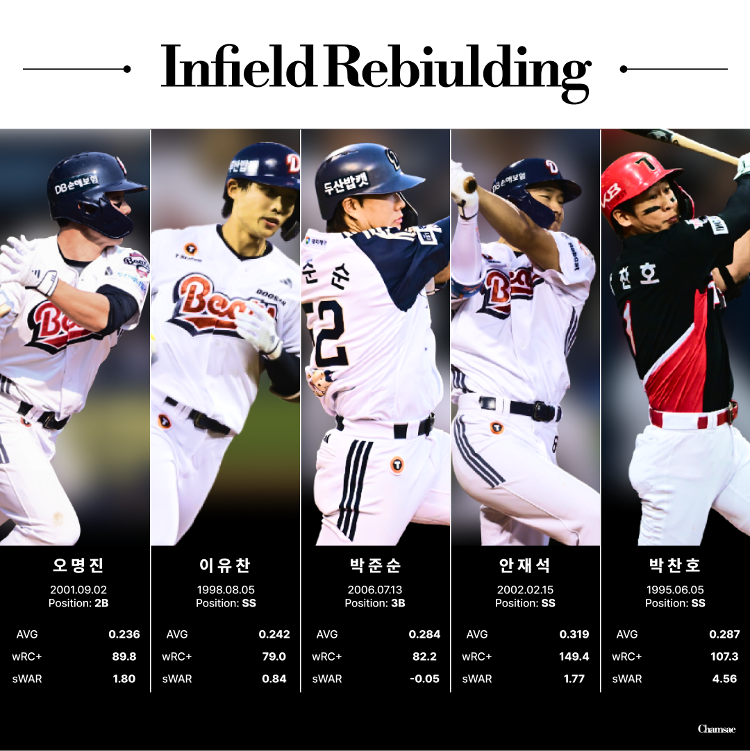 실제로 이번 시즌 두산의 내야에는 강승호, 양석환 등의 베테랑 타자들부터 루키 시즌의 박준순까지 다양한 선수들이 출전했지만 정확한 해답을 찾기 어려웠습니다. 군복무를 마치고 복귀한 안재석이 좋은 모습을 보여줬고, 여기에 박지훈까지 가세하며 후반기를 이끌었지만 이마저도 표본이 적어 장담하긴 어려웠을 것입니다. 결국 두산은 계산이 서는 보강을 통해 리빌딩을 위한 초석을 마련한 것입니다.
