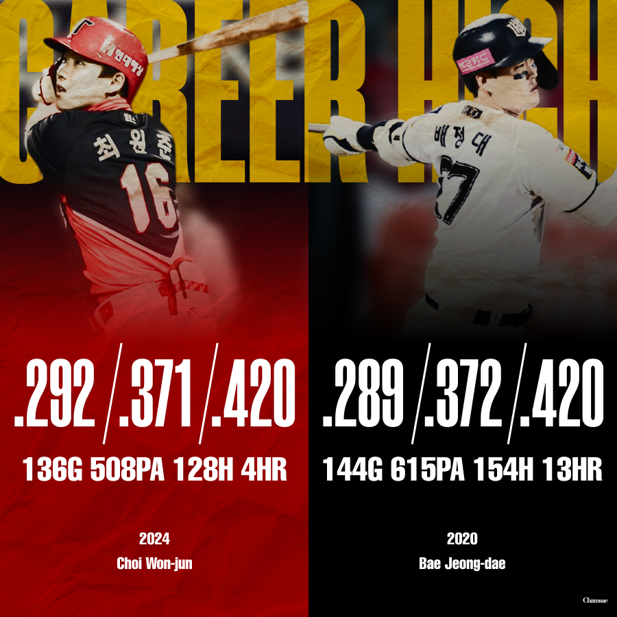 2016년 2차 1라운드, 전체 3번으로 KIA 타이거즈에 입단한 최원준은 많은 기대를 받으며 포지션을 찾아 나섰습니다. 고교 시절 유격수로 활약한 최원준은 수비에서 단점을 보였고, 그로 인해 커리어 초반, 유격수와 3루수, 외야수 등을 오가며 경험을 쌓아갔습니다. 그러던 중 2020년 본인에게 온 기회를 잡으며 중견수로서의 입지를 확고히 했고, KIA 타이거즈의 새로운 리드오프 중견수로 기대를 모았습니다. 상무 복귀 후 2024년 여전한 가치를 증명했으나, 2025년은 최원준에게도 어려운 시기가 되었습니다. 시즌 초반부터 지속적인 부진이 이어졌습니다. 그리고 6월 28일 NC 다이노스와의 3대3 트레이드(이우성, 홍종표, 최원준 ↔ 정현창, 한재승, 김시훈)에 포함되며 새로운 팀에서 시즌을 이어갔습니다. 8월 한 달 OPS 0.769를 기록하며 2번 타순에서 김주원과 함께 팀의 공격을 이끌어 갔으나, 9월 또 다시 부진을 겪으며 결국 최종 0.595의 OPS를 기록해 커리어로우 시즌을 기록했습니다.