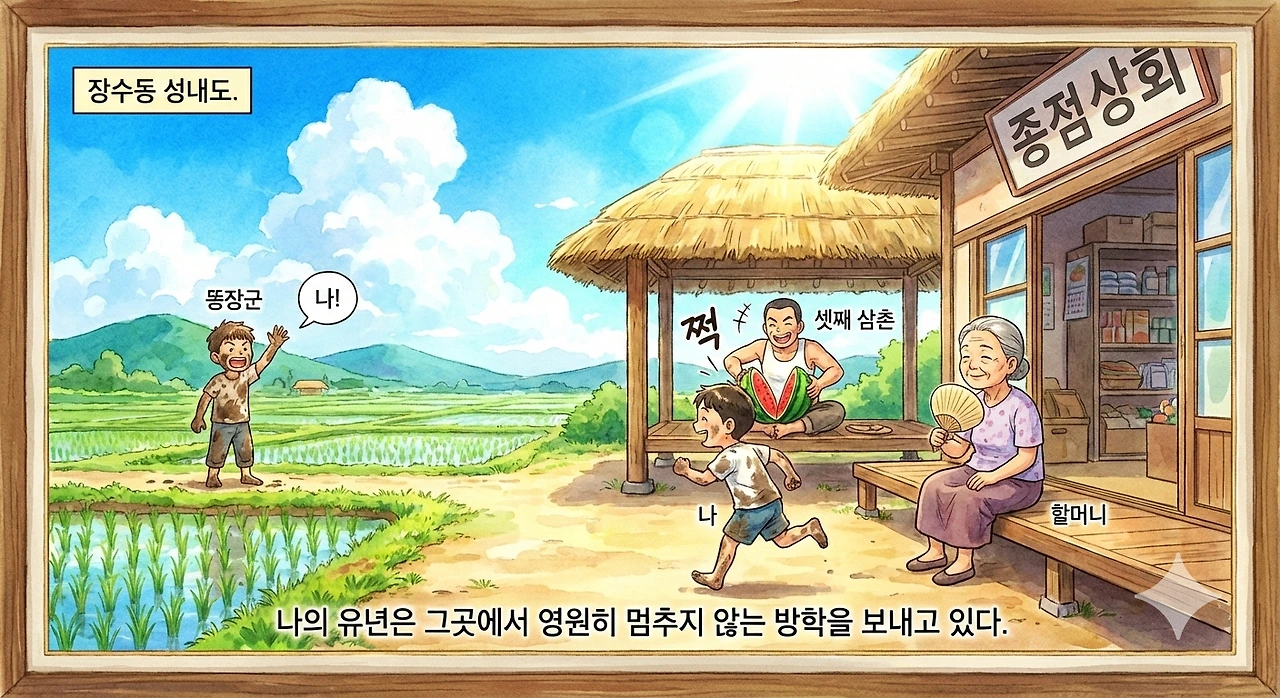장수동의 추억은 내게 단순한 과거가 아니다. 그것은 내 마음 가장 깊은 곳에 걸려 있는, 빛바래지 않는 풍경화다.