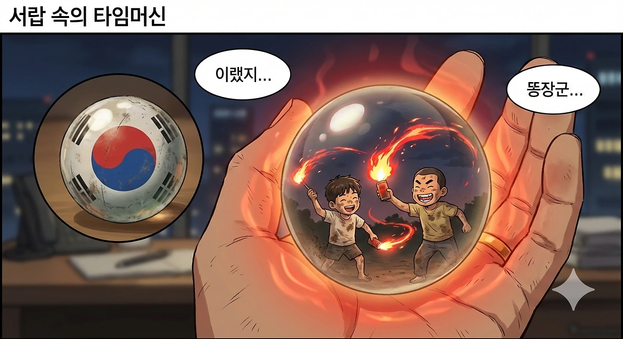 내 책상 서랍 깊은 곳에는 아직도 낡은 왕구슬 하나가 굴러다닌다. 똥장군 녀석이 이별 선물이라며 무심하게 쥐여줬던 그 구슬. 가끔 삶이 고단하고 팍팍하게 느껴질 때면, 나는 그 차가운 유리 구슬을 손바닥 위에서 굴려본다. 그러면 신기하게도 손바닥에 온기가 돌기 시작한다.