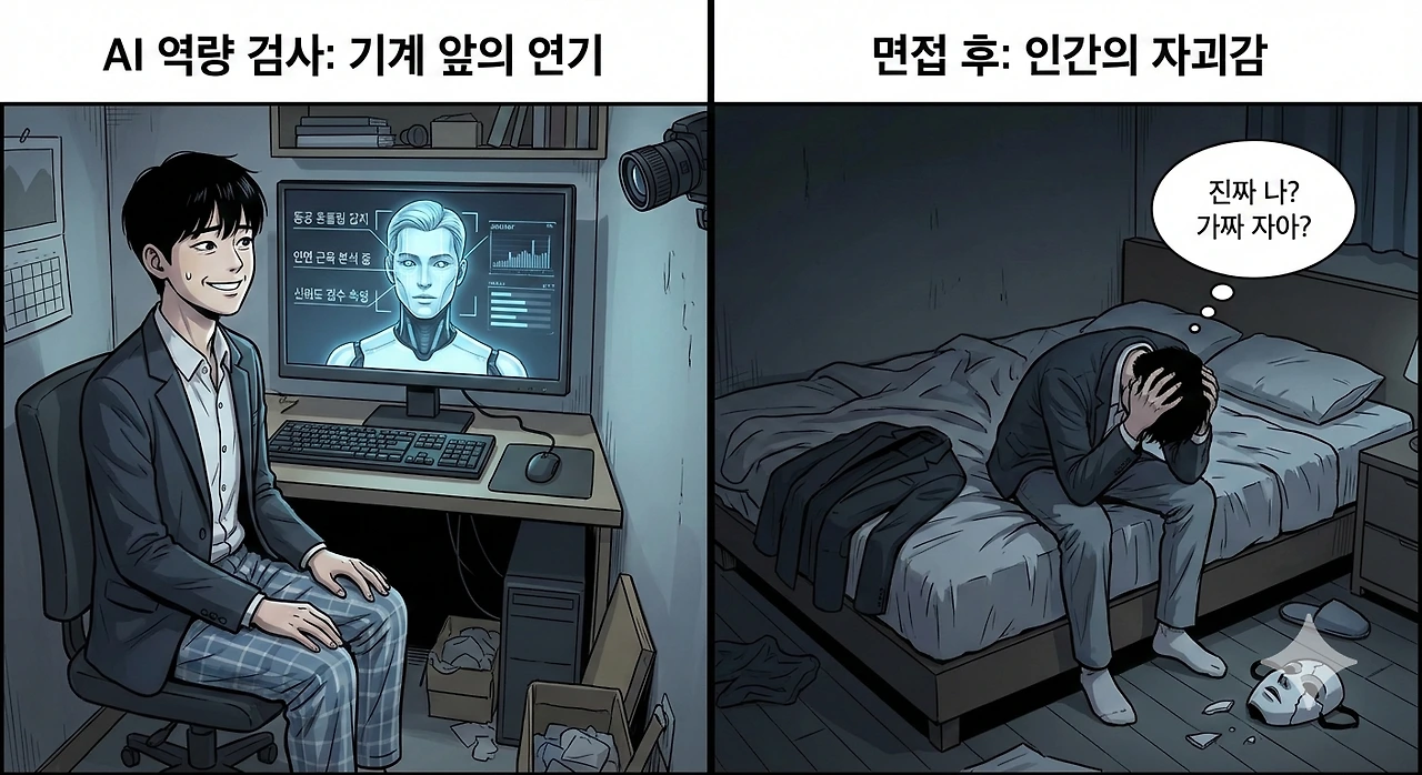 합격 통보를 받는다면, 그건 나(진짜)가 합격한 것일까, 아니면 연기 잘한 내 AI용 자아(가짜)가 합격한 것일까.