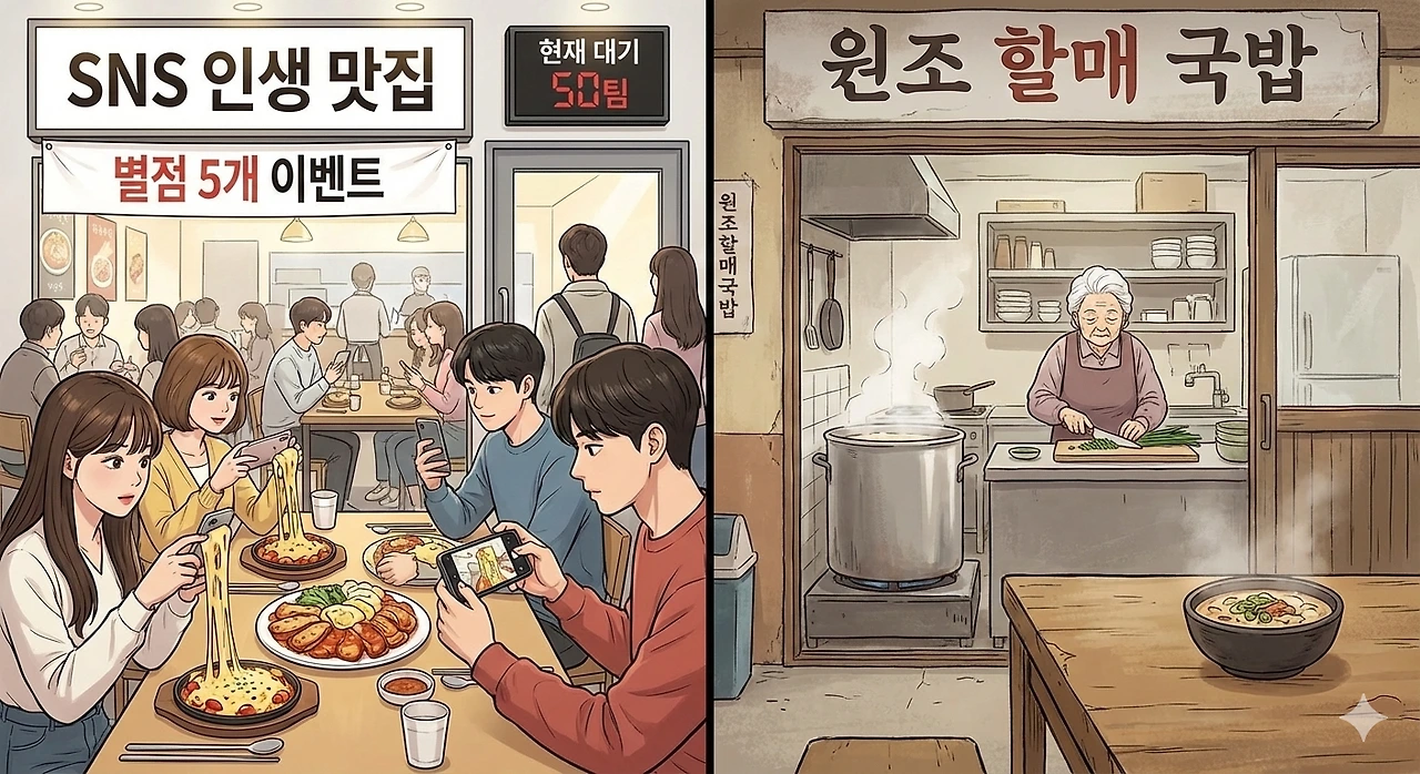 가짜 맛집은 돈으로 산 리뷰로 건물을 올리는데, 진짜 맛집은 월세를 걱정하며 문을 닫는다. 자본이 만들어낸 알고리즘이 우리의 혀를 마비시키고, 진짜 장인들을 골목 밖으로 내몰고 있다.