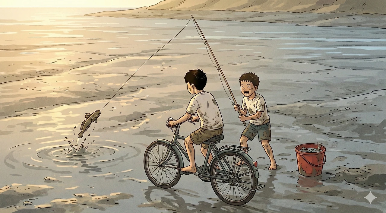 우리는 개선장군처럼 양동이를 들고 둑방길을 걸어 나왔다. 갯벌 수돗가에서 대충 진흙을 씻어냈지만, 짠내와 비린내는 가시지 않았다. 하지만 그 냄새가 싫지 않았다. 그건 우리가 오늘 하루 갯벌과 치열하게 뒹굴었다는 훈장 같은 냄새였으니까.