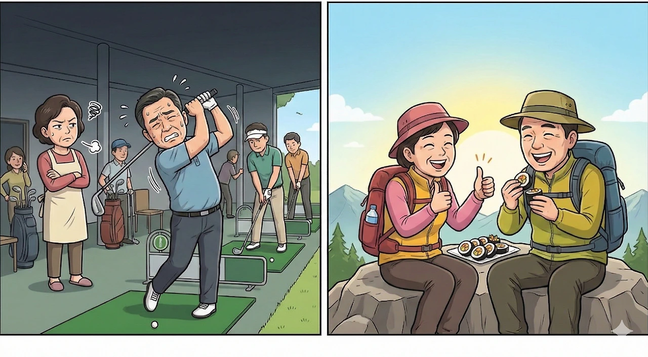 동창회만 다녀오면 나경제 씨는 작아졌다. 친구들이 전부 골프 이야기를 했기 때문이다. "야, 비즈니스 하려면 골프는 기본이야." 그는 형편도 넉넉지 않은데 무리해서 중고 골프채를 샀다. 남들 꽁무니 쫓아가다 가랑이가 찢어지는 줄도 모르고. 주말마다 연습장 간다고 돈 쓰고, 아내 눈치 보고. 정작 실력은 늘지 않아 허리만 아팠다.