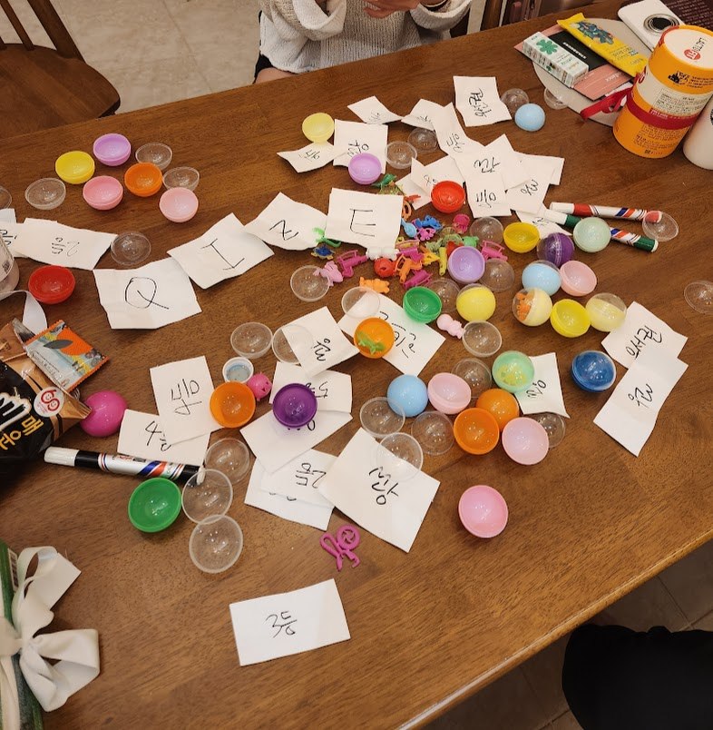 숙소로 돌아와 아이들이 꺼낸 건 ‘찍찍이 동전 붙이기’와 ‘자판기 선물 뽑기’.