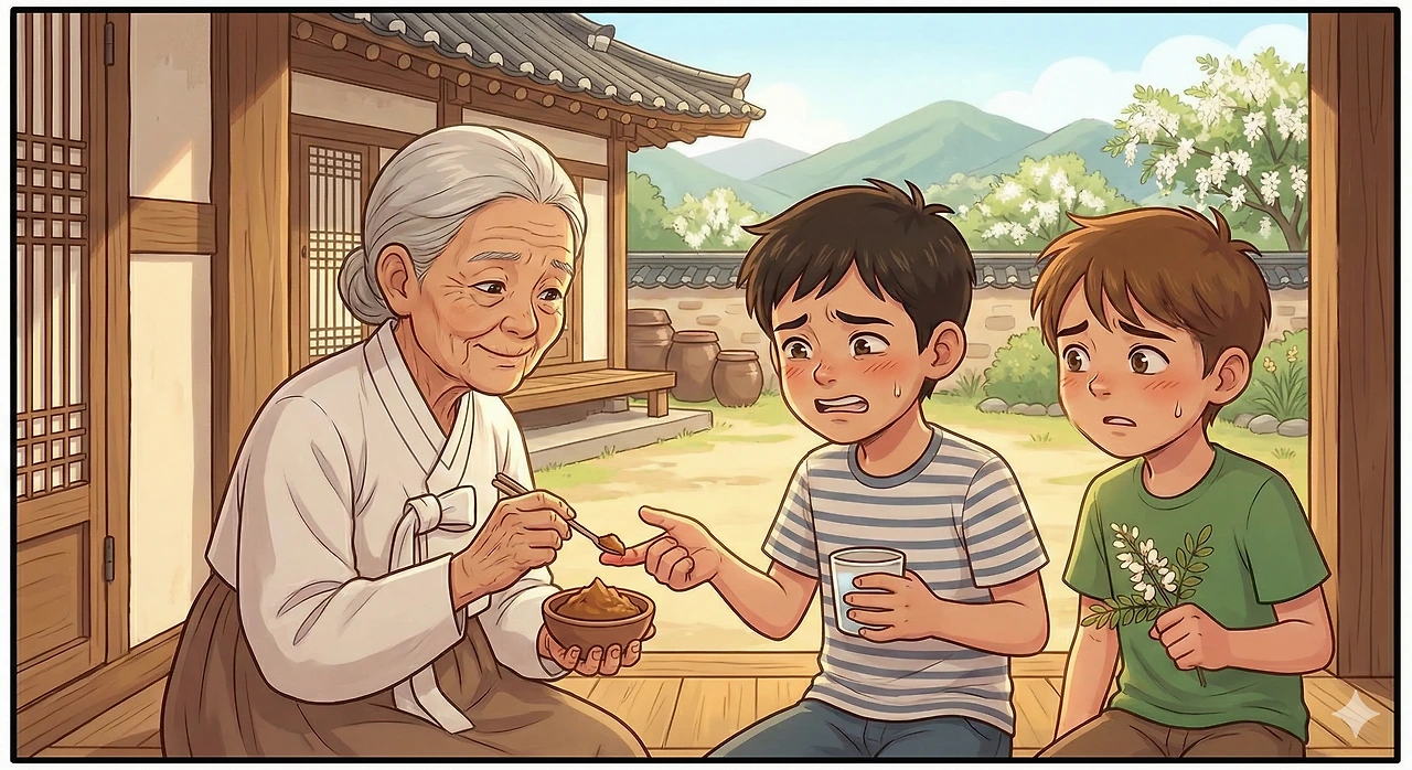 할머니는 짭짤하고 구수한 냄새가 나는 된장을 손가락에 듬뿍 발라주셨다. 의학적인 근거가 있는지는 모르겠지만, 신기하게도 된장의 서늘한 기운이 화끈거림을 잡아주었다.