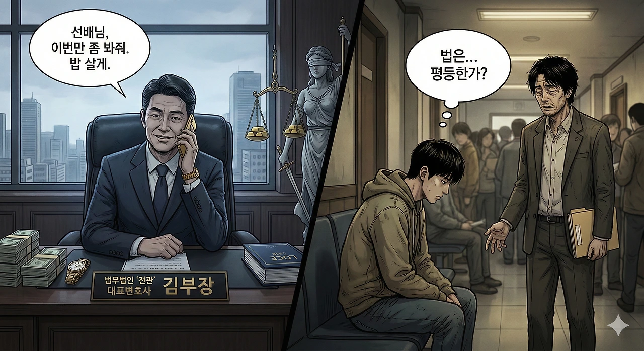 통화는 1분도 채 걸리지 않았다. 그 짧은 통화 한 통의 대가로 의뢰인은 수천만 원, 아니 수억 원의 수임료를 지불했다. 이른바 '전관예우(前官禮遇)'. 전직 고위 관리에게 예우를 갖춘다는 그럴듯한 포장이지만, 실상은 법의 저울을 돈으로 매수하는 명백한 '사법 거래'다.
