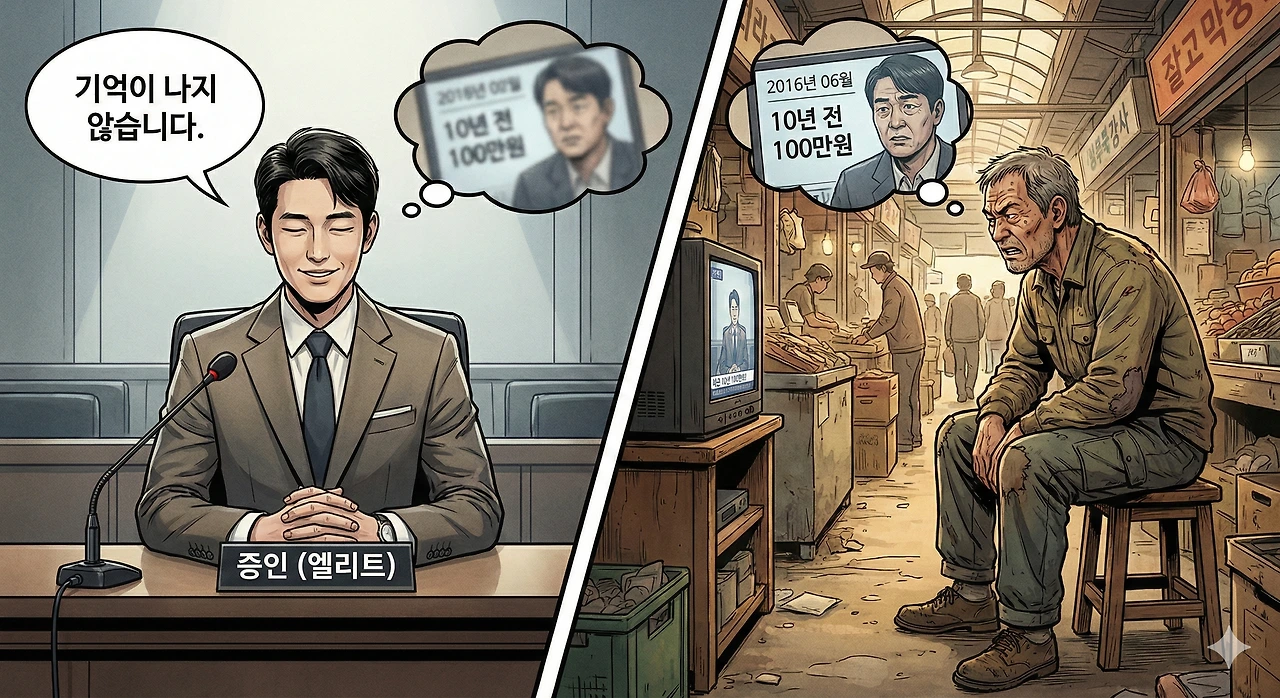 머리 좋은 가짜들은 '기억나지 않는다'며 법망을 미꾸라지처럼 빠져나가고, 가슴에 멍이 든 진짜들은 그들의 기억상실 쇼를 보며 분통을 터뜨린다.