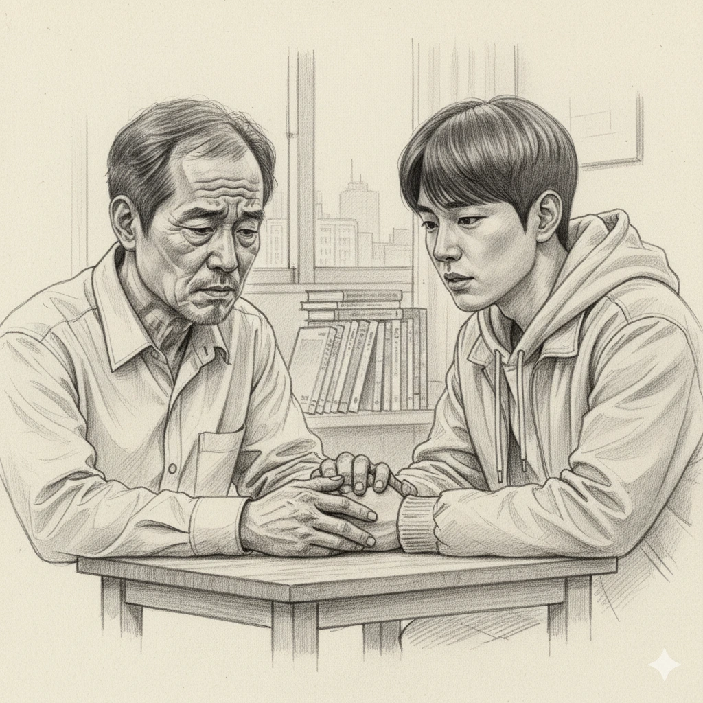 저녁 식탁 위의 침묵은 된장찌개보다 무거웠다.