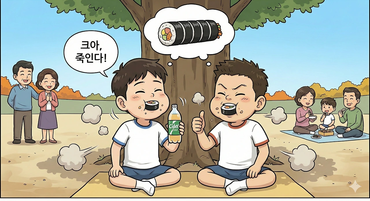 할머니가 보자기를 풀자 고소한 참기름 냄새가 진동했다. 속이 꽉 찬 김밥, 삶은 달걀, 그리고 특별히 장만해 온 삶은 밤과 고구마. 우리는 흙먼지가 풀풀 날리는 운동장 바닥에 앉아 김밥을 입에 밀어 넣었다. 모래가 좀 씹히는 것 같았지만, 그까짓 건 문제가 되지 않았다.