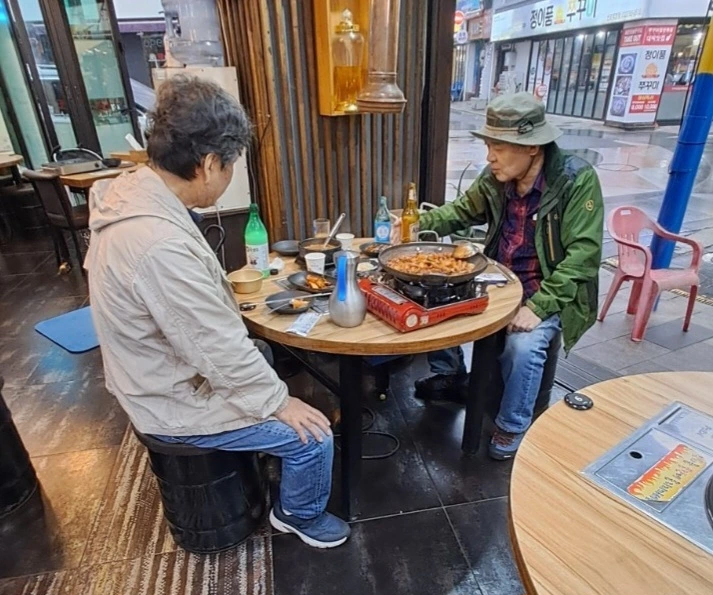 비는 내리고 초저녁부터 한 잔 술이 두 잔 세 잔으로 사내들의 낭만이 술잔 위를 헤집고 다닌다