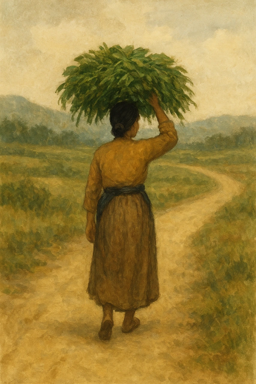 어머니는 산나물을 머리에 이고 장터로 가서, 저녁이 되어야야 겨우 보리쌀 한 됫박을 안고 돌아온다. 그 모습은 고단하고 애잔하지만, 자식에게 끼니를 이어주려는 헌신의 상징으로 다가온다.