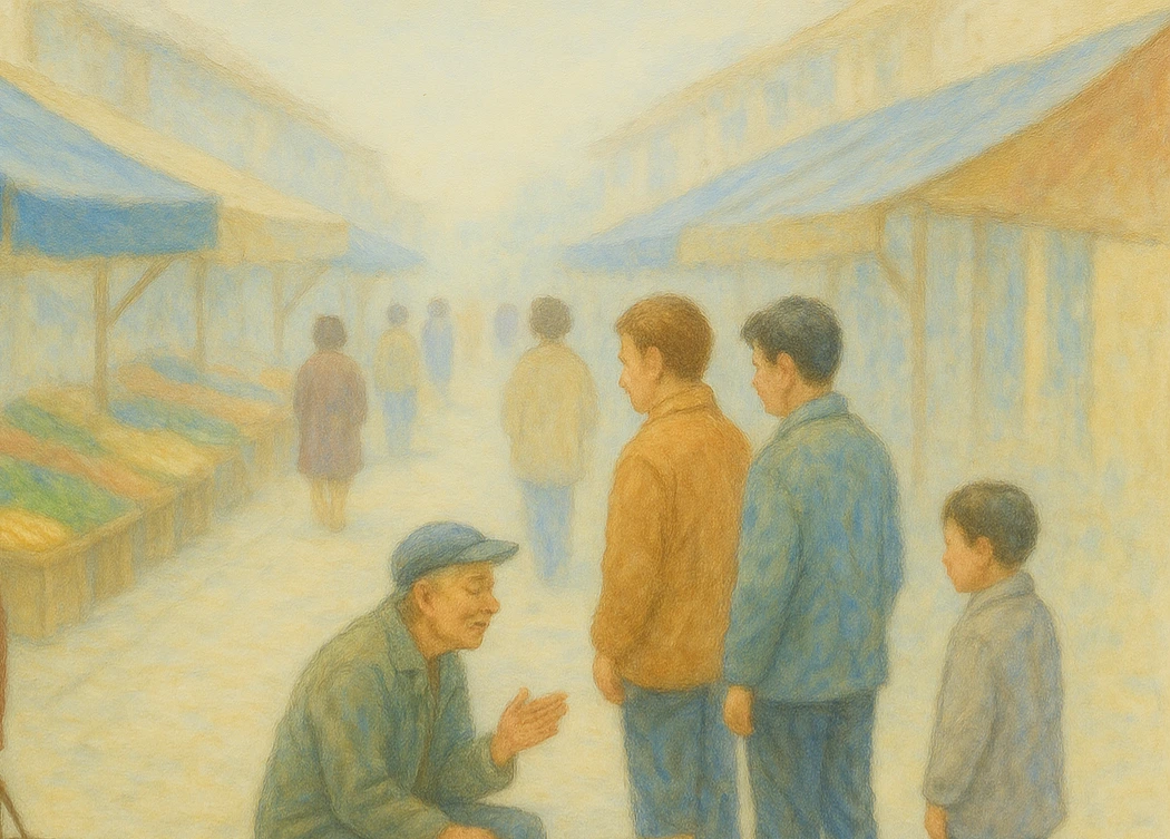 전진식 시인의 시 「시장풍경」은 한 편의 짧은 다큐멘터리처럼, 변두리 시장의 한 장면을 정직하고 담담한 시선으로 그려낸 작품이다. 시인이 묘사한 시장은 활기차고 북적이는 공간이 아니다. 오히려 ‘사선으로 뻗힌 난전’과 ‘사람들의 발길은 없고’라는 표현에서, 생기를 잃고 소외된 공간의 풍경이 고스란히 드러난다.