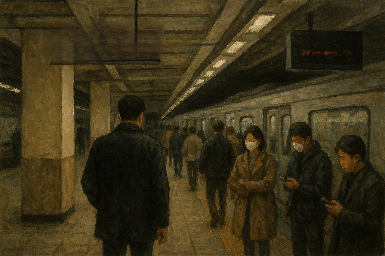 모두가 바쁘게 뛰어가며 뒷태 만 남기고