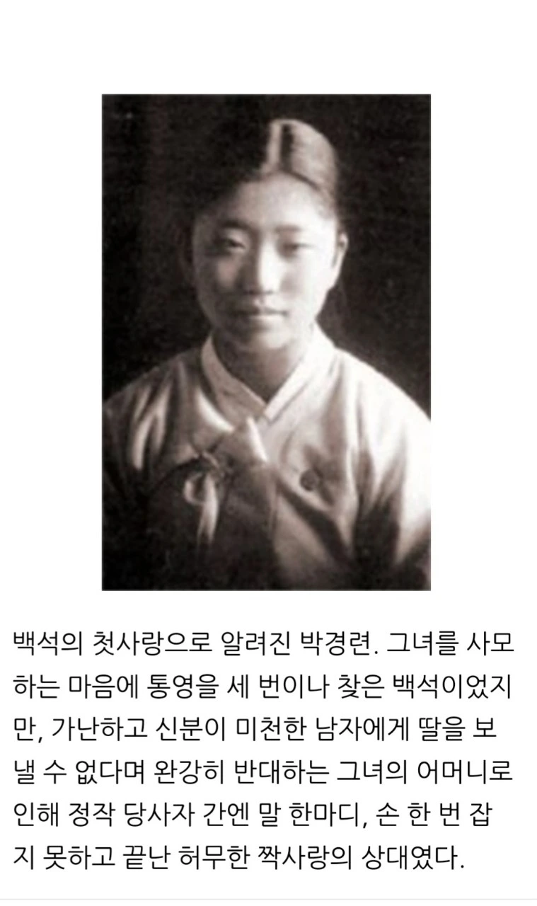 자야와의 사랑 이면에 백석의 가슴 속에는 박경련에 대한 애틋한 사랑 이야기가 숨겨져 있었다