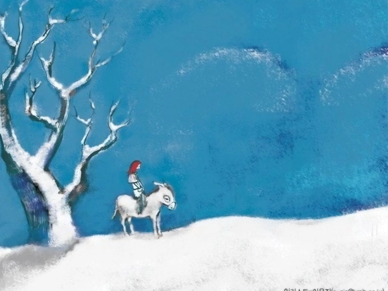 눈 속에서 울며 오는 당나귀는 슬프면서도 순박한 사랑의 상징처럼 보인다.