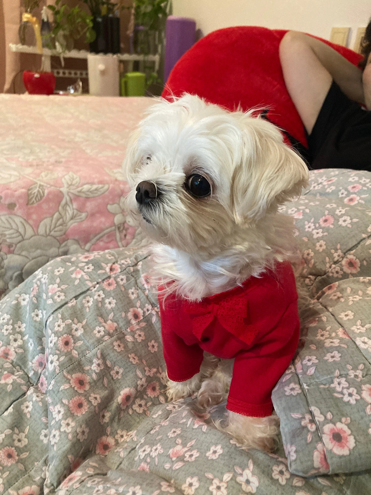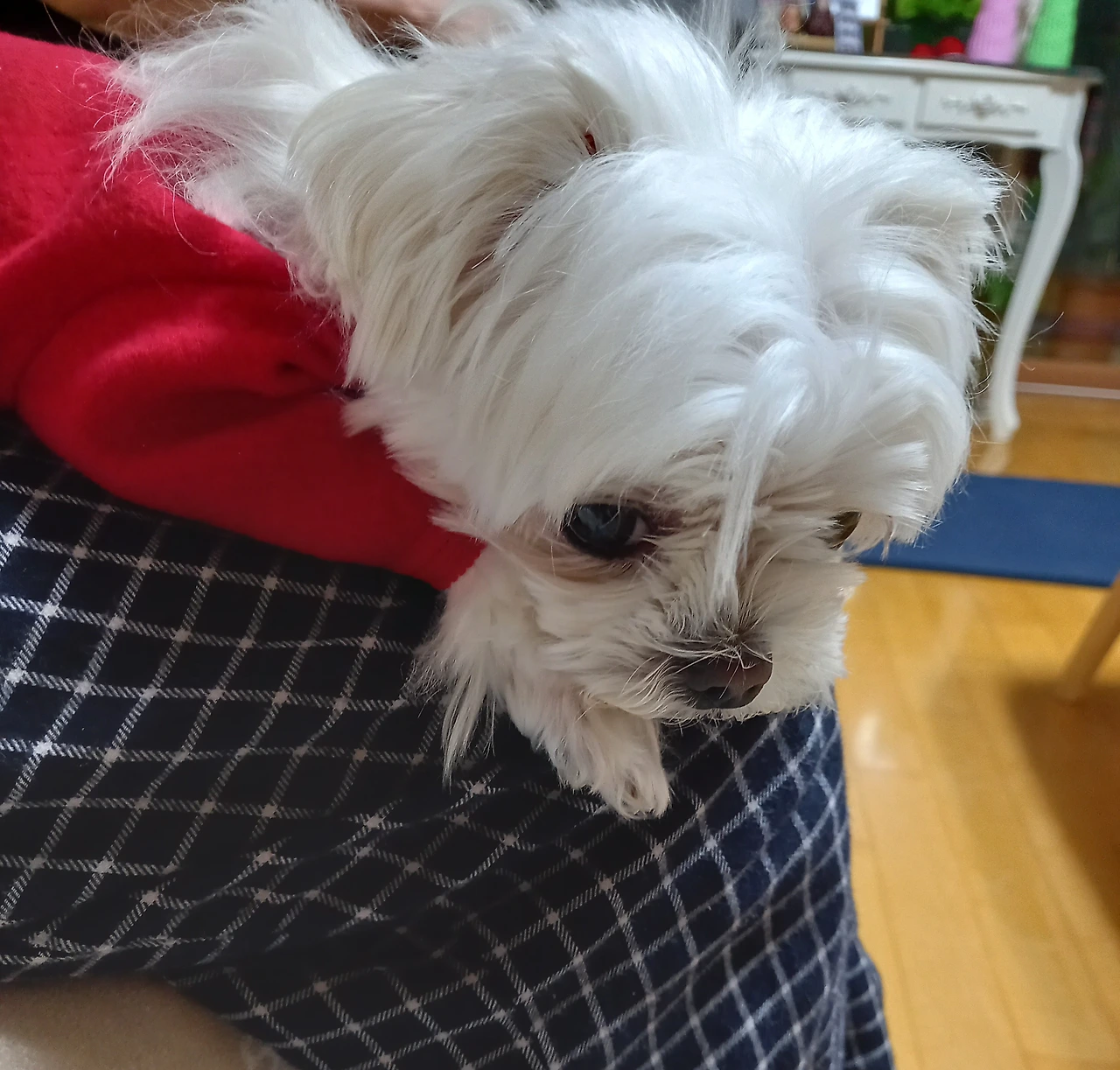 호소하는 눈빛을 쏴 보내면, 임시집사는 용케도 알고 나를 원하는 장소로 모신다. 맨바닥에는 절대 앉지 않는 것이 내 신조임을 익히 아는 집사의 친척들. 최애는 집사의 무릎 위. 그다음은 푹신한 침대 위. 당연히 마룻바닥에 깔아놓은 애착 담요보다 언니의 침대가 좋다. 언니도 그걸 알고 보드라운 언니의 침대 한 켠을 내주었다. 언니의 숨소리를 들으며 깊이 잠들었던가 보다.