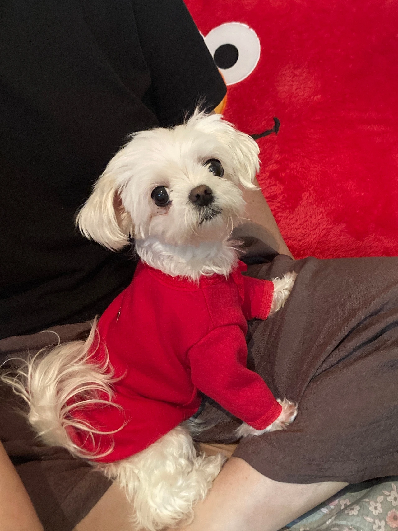 무릎 위에서 자는 거야. 뒤척거리지도 못하고 다리가 저려 혼났어."