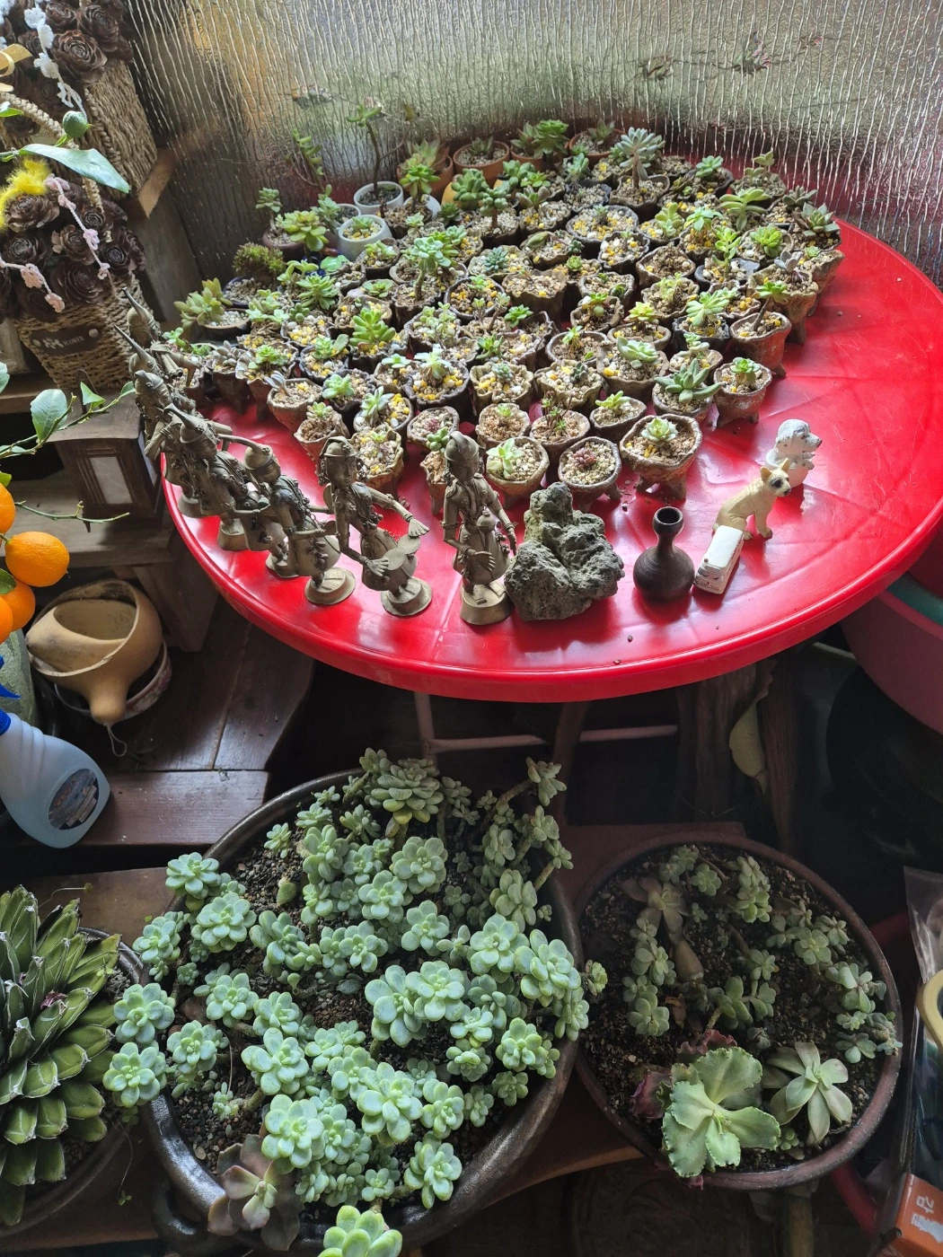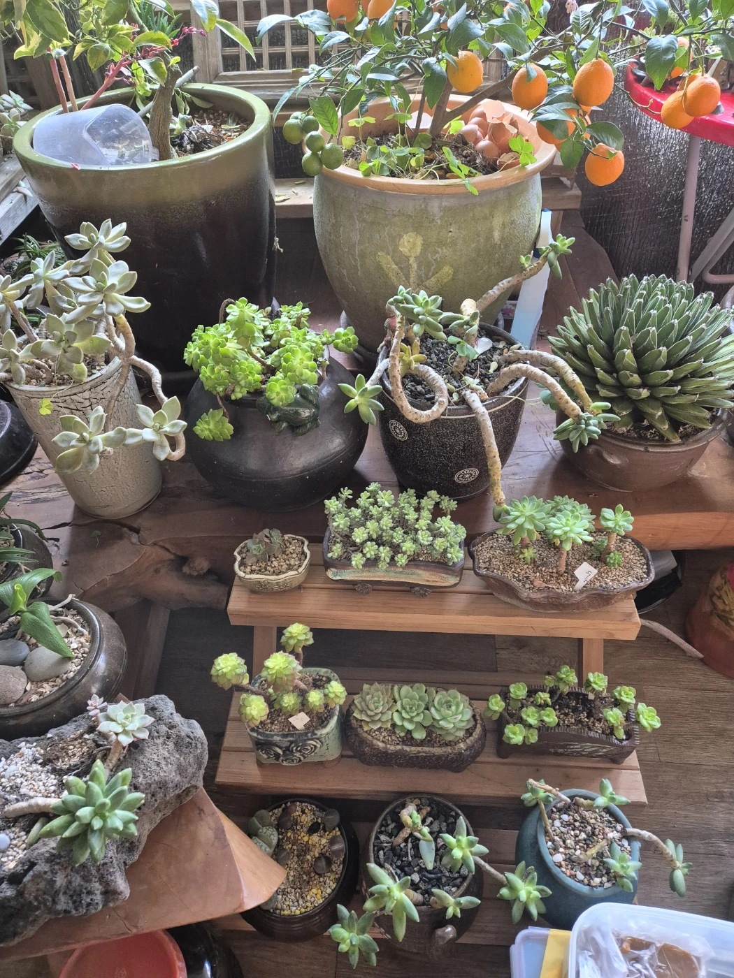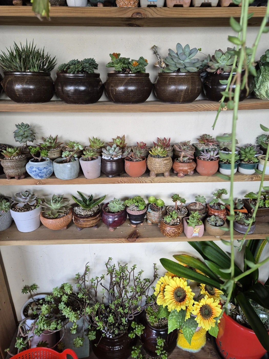 셀 수도 없이 많고 다양한 다육이 화분이었다. 비닐하우스에서 키우던 것을 겨울이라 집안으로 들여놓았다는데, 아기자기하고 귀여운 것들부터 과실이 탐스러운 귤나무까지, 많기도 많았다.
