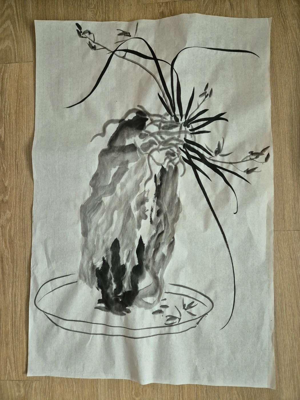 손이 덜덜 떨린다. 수전증도 아닌데 손은 왜 떨리누? 직선도, 그렇다고 완전한 곡선도 아닌 난초의 잎새, 부드러움과 강함의 조화를 덜덜 떨리는 손으로 표현해 내기가 너무 힘겹다. 붓끝에서 피어나는 난을 보면 힘조절이 관건인 듯한데, 난공불락 같다.