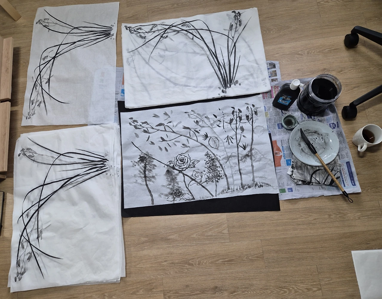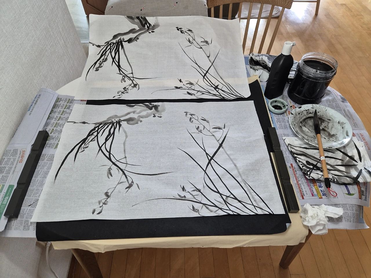 일주일에 한 번, 선생님은 신선의 경지에 오른 듯 붓을 자유자재로 놀리시며 채본을 완성해 주신다. 가지고 온 채본을 놓고 일주일 동안 낑낑대며 연습을 한다. 짧게는 하루에 두세 시간, 길면 네다섯 시간 정도를 난초와 씨름하는 요즘. 인내와 더불어 오랜 시일이 필요한 취미를 하필 왜, 지금 시작했을까 하는 후회가, 이왕 시작했으니 끝장을 낼 때까지 파고 들어보자는 욕구랑 맞서 싸운다.