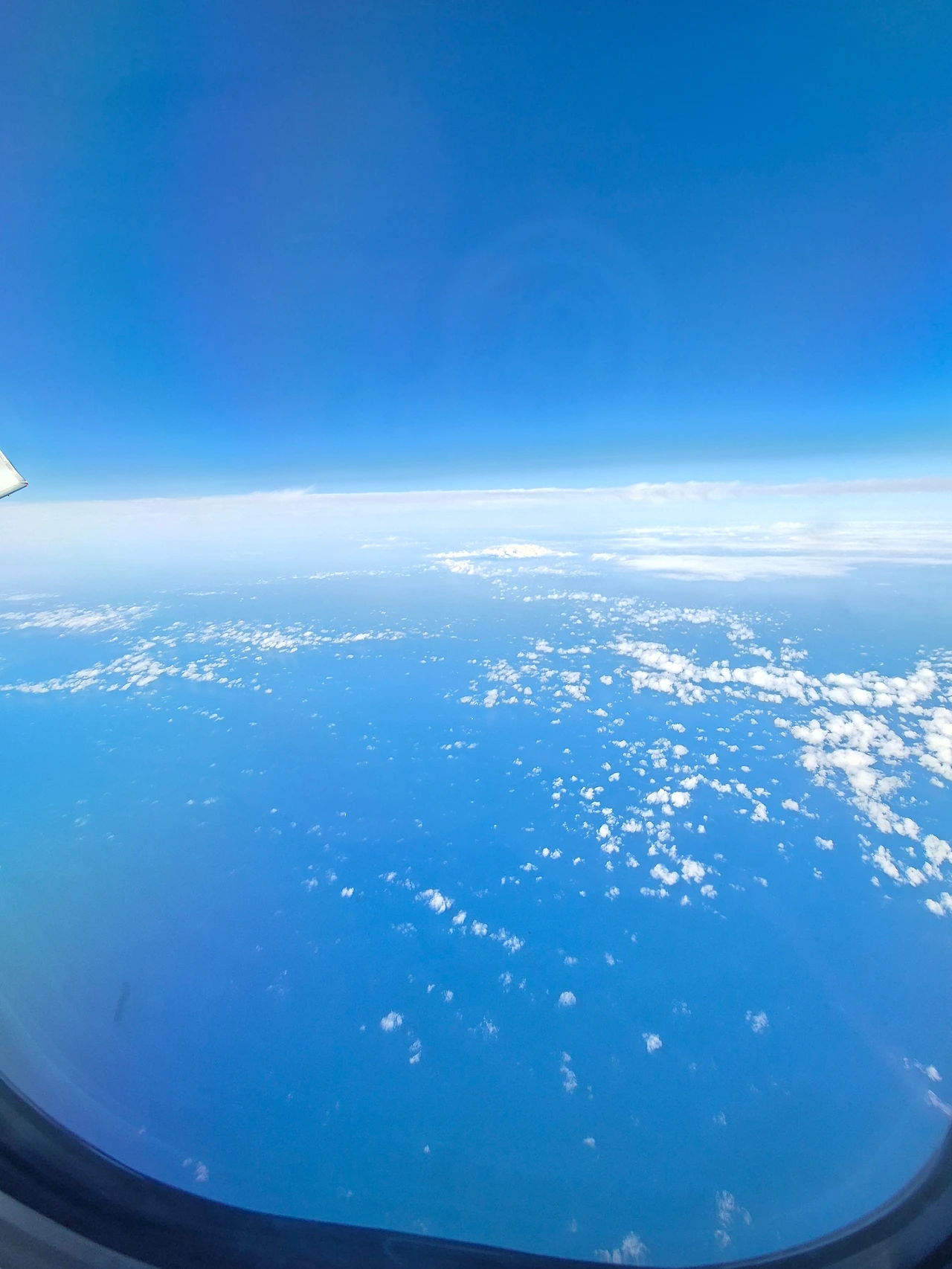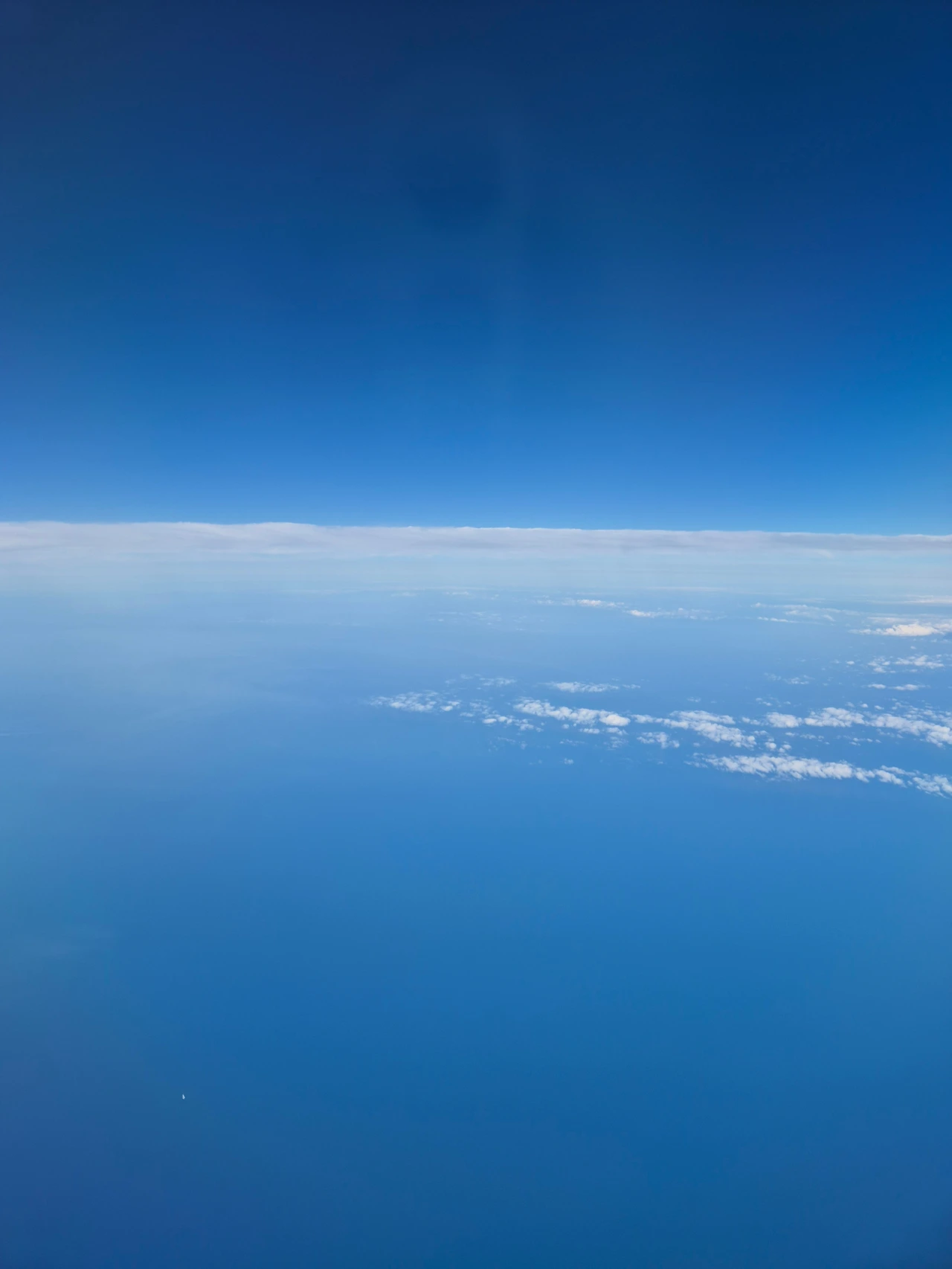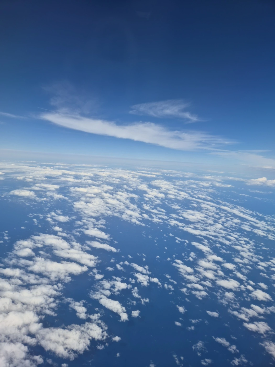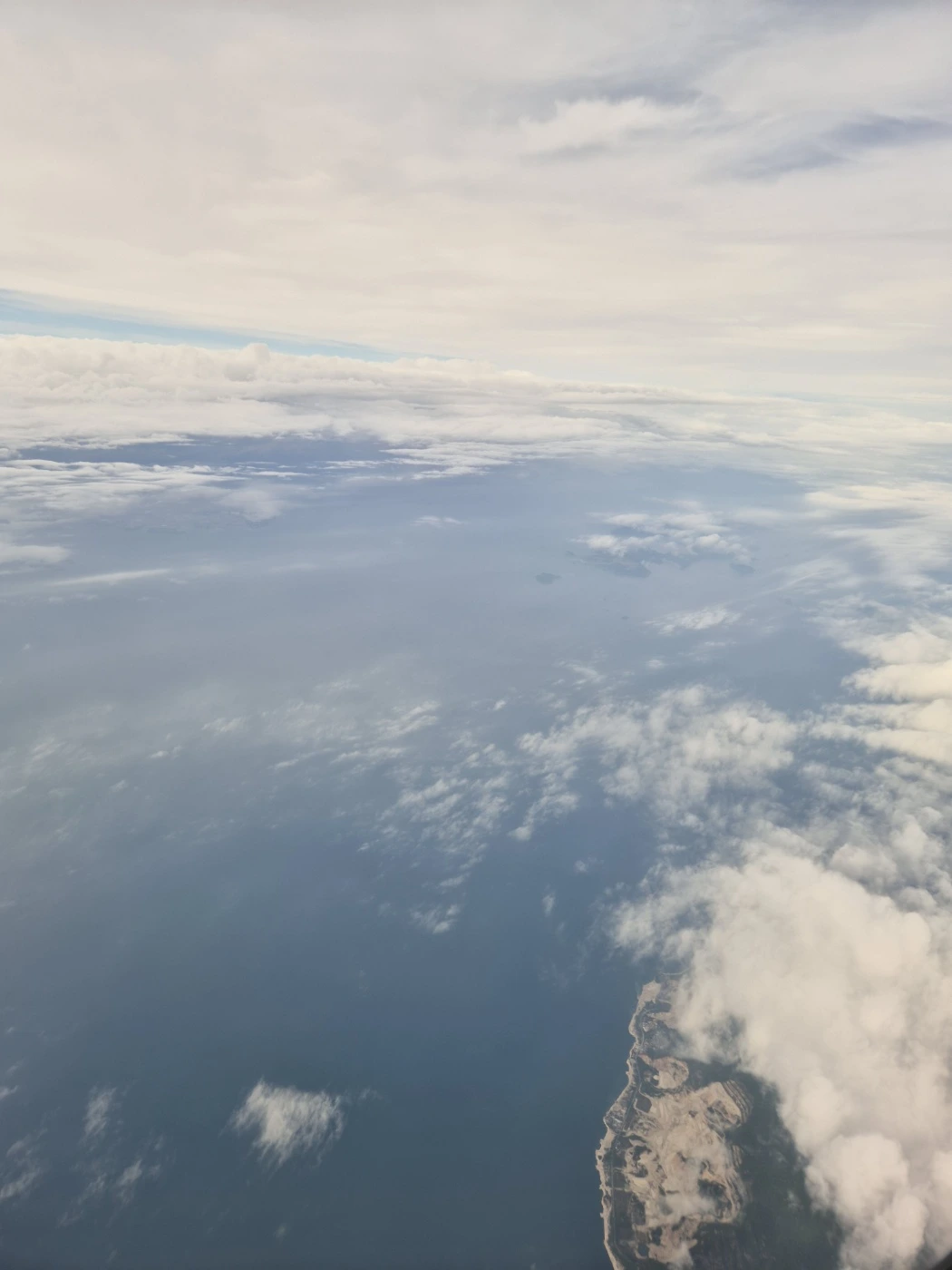 구름은 올려다볼 때도 멋지지만 내려다보아도 황홀하기만 하다. 낮은 고도의 구름층, 항공기 고도와 비슷한 높이의 구름층, 좀 더 높은 구름층을 겹겹 두른 채 창공은 표연히 나그네들을 잔뜩 태운 항공기를 응시한다. 폭신폭신한 저 구름밭에서 뛰놀고 싶다. 저 구름밭 어디쯤 그리운 엄마가 계실 것만 같다. 울 엄마도 여행 참 좋아하셨는데......