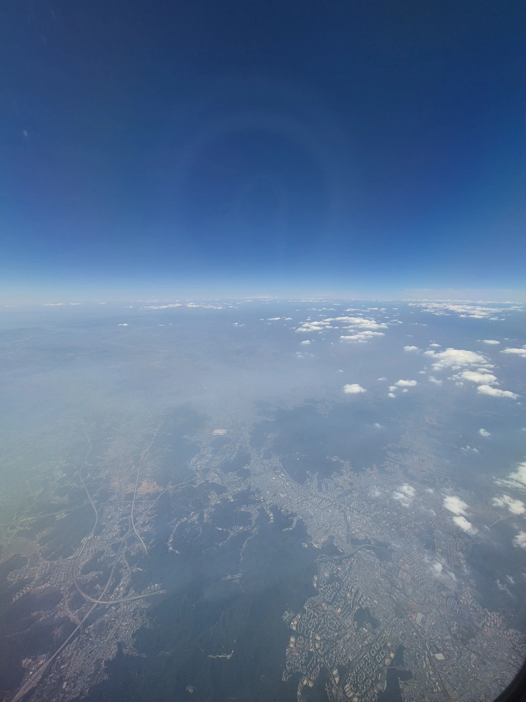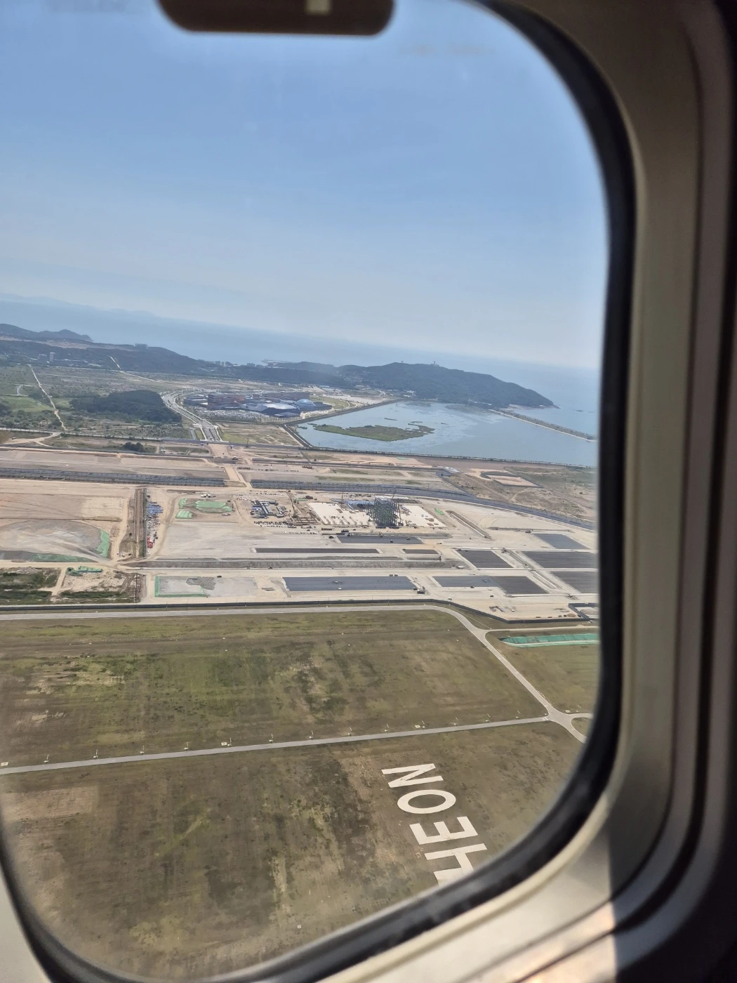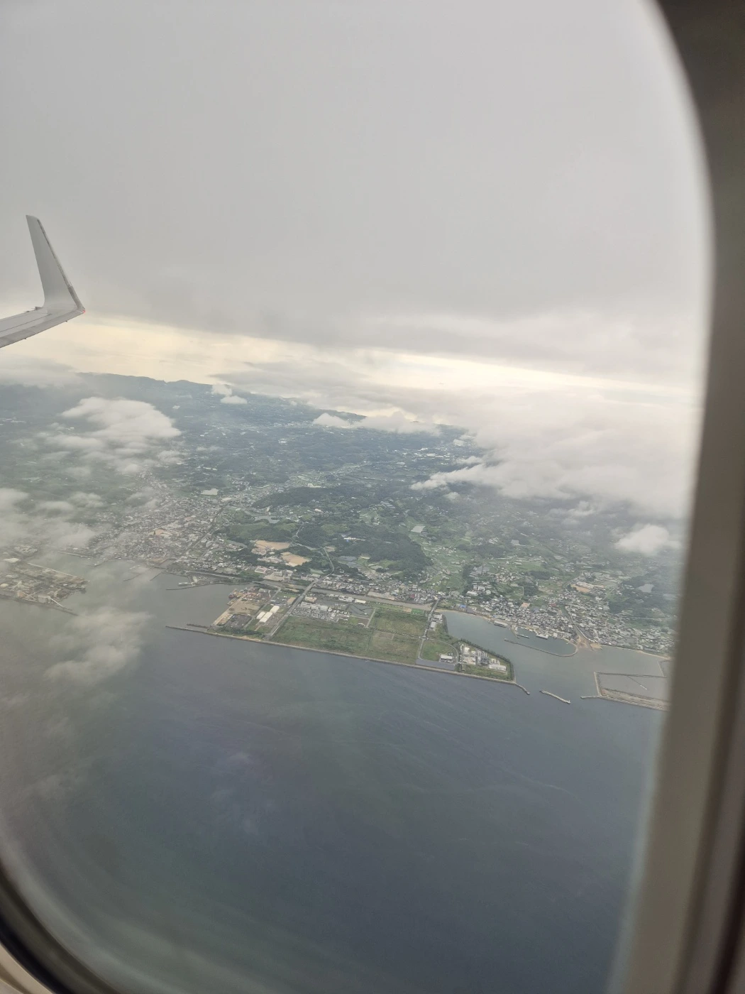 어느 순간, 먹장구름이 푸른 창공을 덮어버린다. 일본영공에 가까워졌나, 간사이 공항에 비가 내린다는데. 먹구름 사이로 육지가 보인다. 일본의 어느 항구인가 본데 되게 넓다. 촘촘히 박혀 있는 나지막한 건물 저 너머로 병풍 같은 산맥이 보인다. 고베항인가.