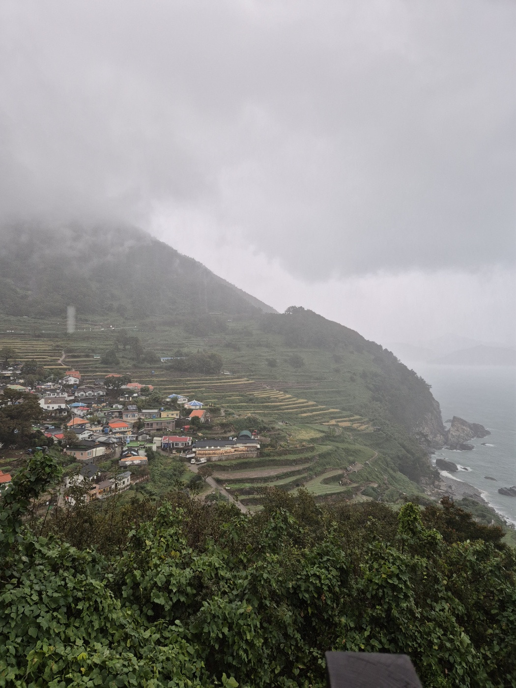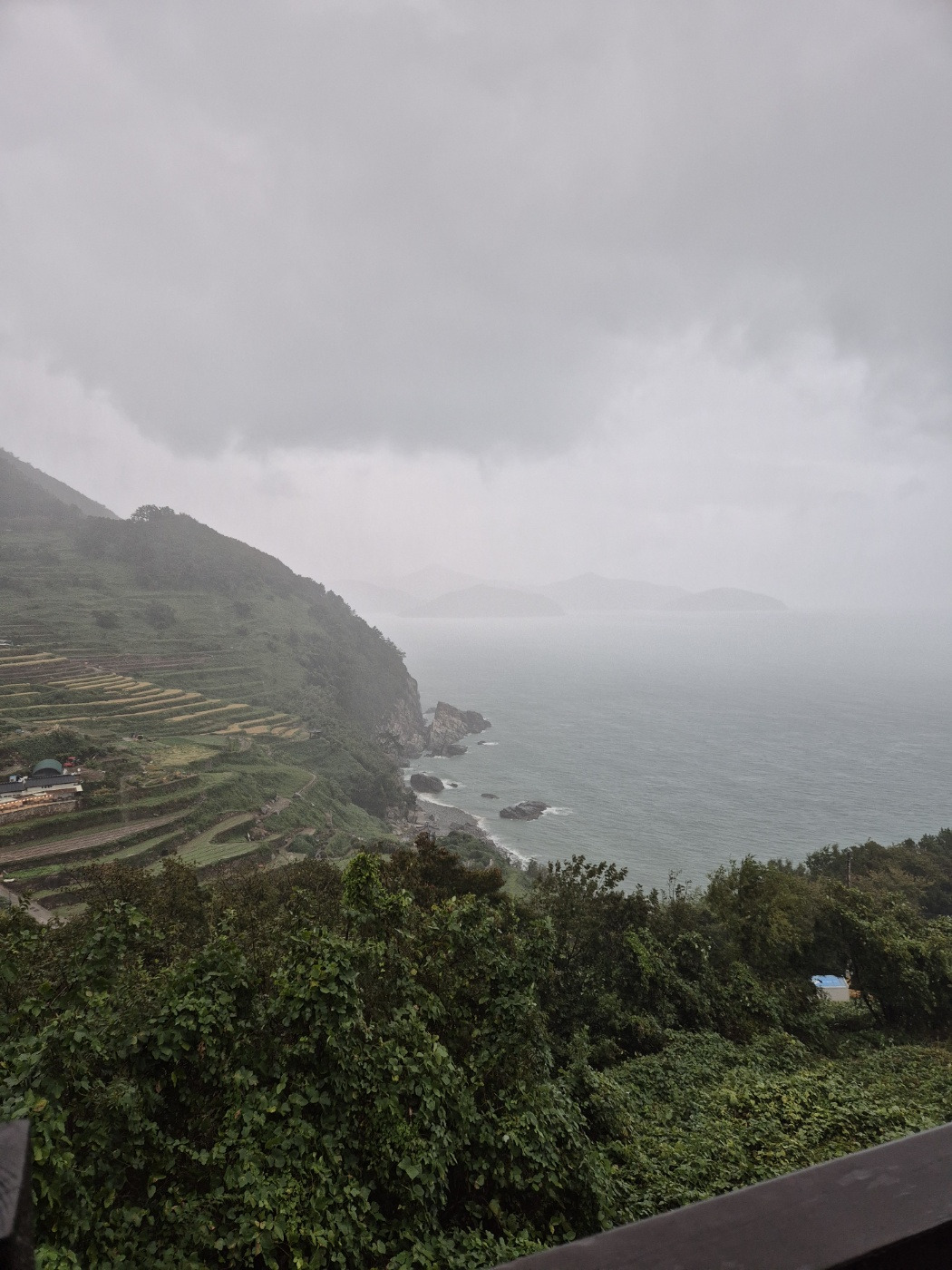 다락논 풍경이며 바다 감상은 한 물 건너가고, 일단 차 안으로 피신!