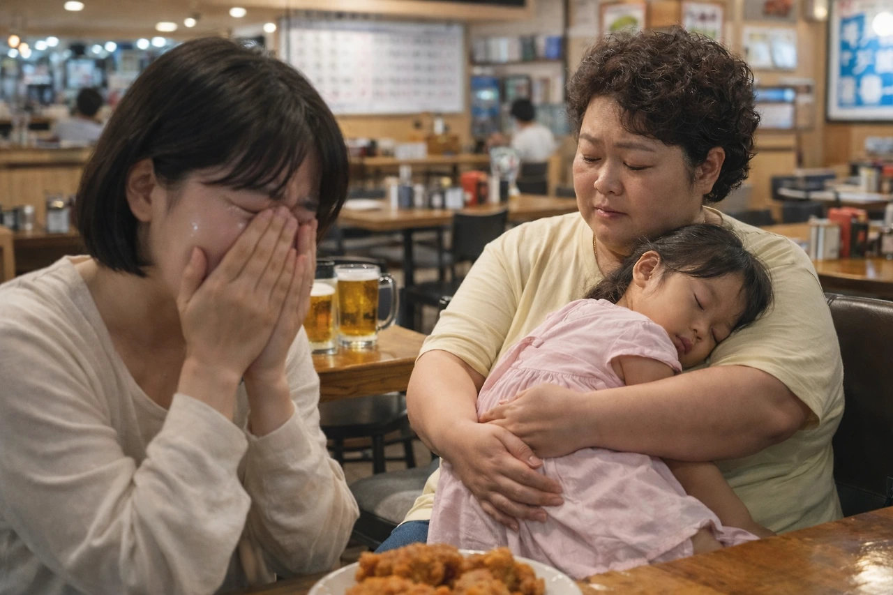 치킨 집에서 잠들어 있던 그 어린 딸은
