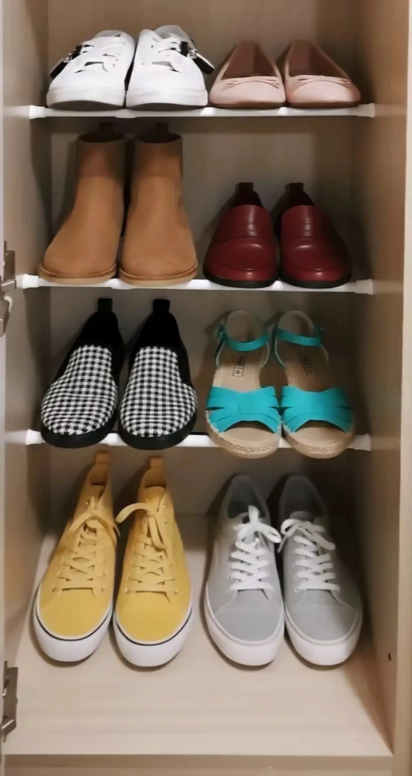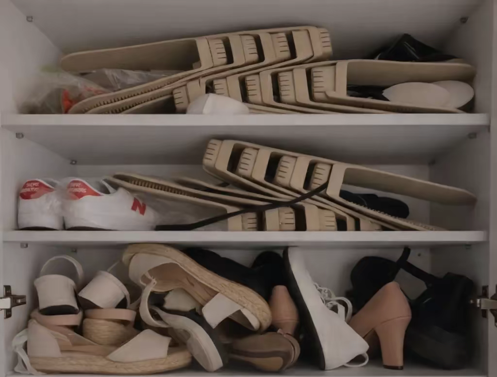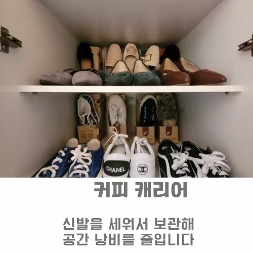 신발을 세우거나 위로 쌓아 공간 낭비를 줄일 수 있다.