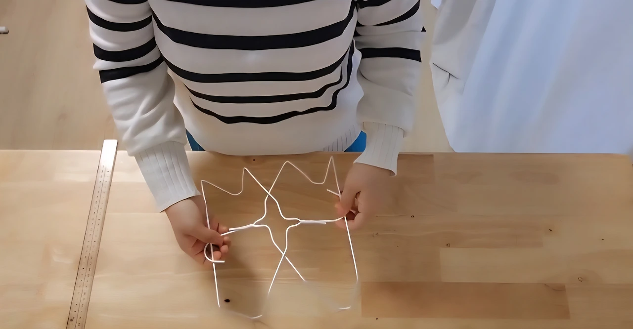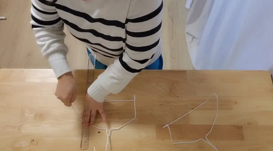 옷걸이 양쪽을 같은 각도로 구부려 모양을 맞춘다.