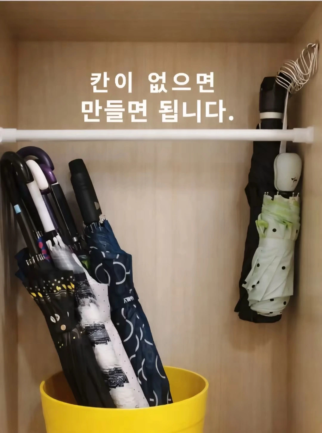 장우산을 두는 자리나, 층고가 남는 칸에 설치해, 버려지던 공간을 수납공간으로 바꿀 수 있다.