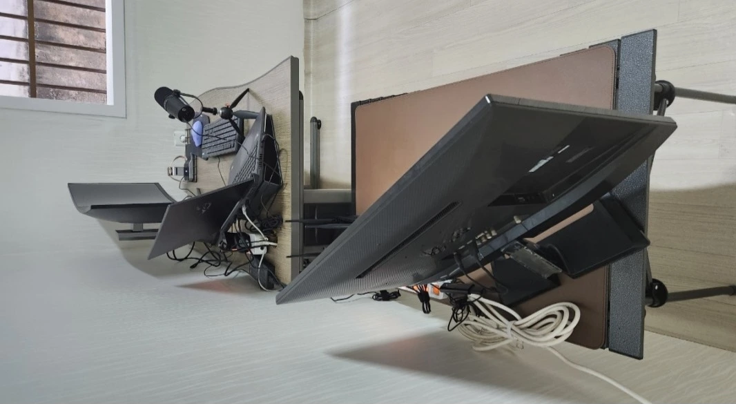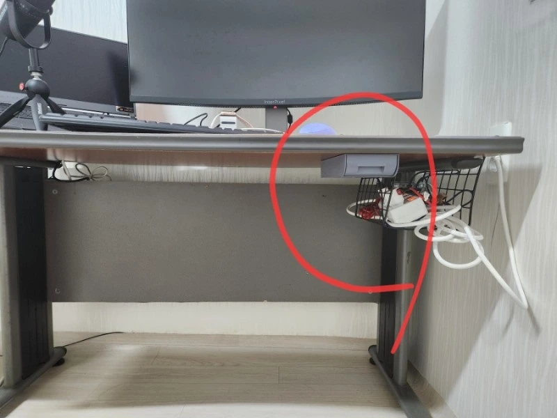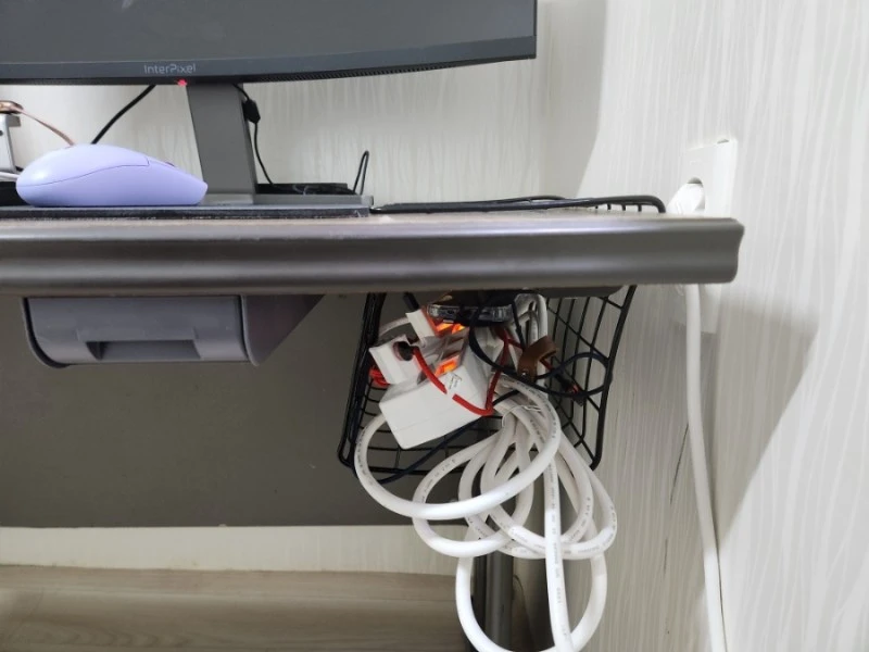 책상 위 전선들이 워낙 잘 보이는 구조라 이럴 땐 밖에 나와있지 않아도 될 물건은 되도록 가려두는 센스가 필요하다