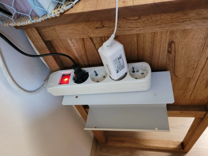 멀티탭 무게가 나갈 땐 스티커 제품만으론 힘을 받지 못해 떨어질 수 있다.