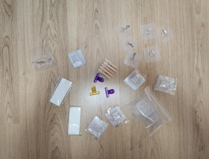 이런 고정클립등을 활용해서 가구나 벽에 붙였다 쉽게 떼어낼 수 있다.