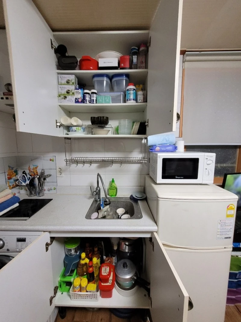 확연한 티도 안 나면서 시간이 오래 걸리는 전선 정리는 나중에 마지막 타임에 셋이 박차를 가하기로 하고 나는 주방정리를 맡았다