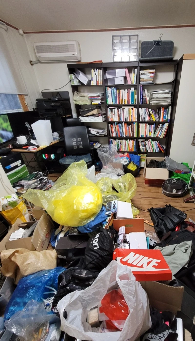 이유인즉슨 하던 사업을 말아먹고 집을 확 줄여서 이사 오는 바람에 이삿짐을 다 풀지 못했다고 했다