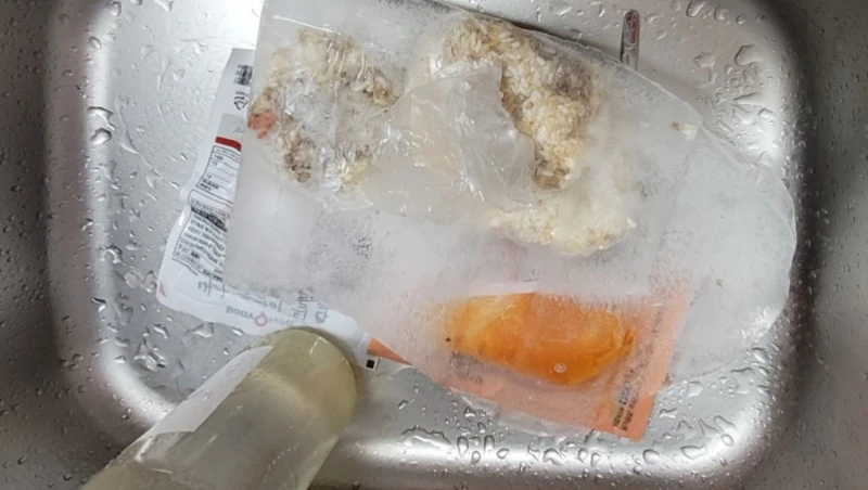 비닐포장 돼있는 냉동식품은 고무줄이나 집게를 이용해 사이즈에 맞게 묶는다