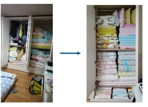 이렇게 두 군데로 나눠 들어갔던 이불들이 한 군데 다 들어오는 걸 알 수 있다.