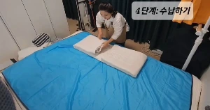 이불을 넓게 접으면 아래 깔린 이불을 꺼낼 때 우르르 한 번에 쏟아져 나온다.