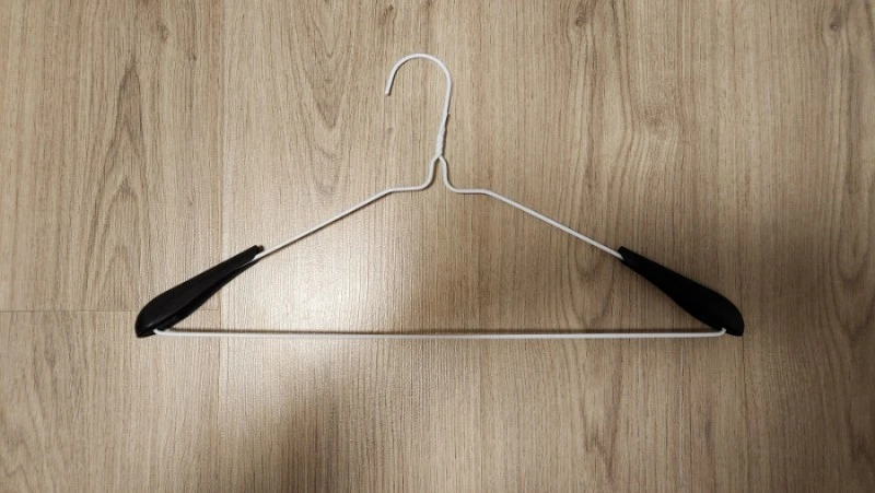 세탁소 옷걸이를 써도 좋다. 어깨뿔이 신경 쓰이는 소재의 옷은 옷걸이 행거캡을 끼우거나 거는 법을 달리해서 걸어준다