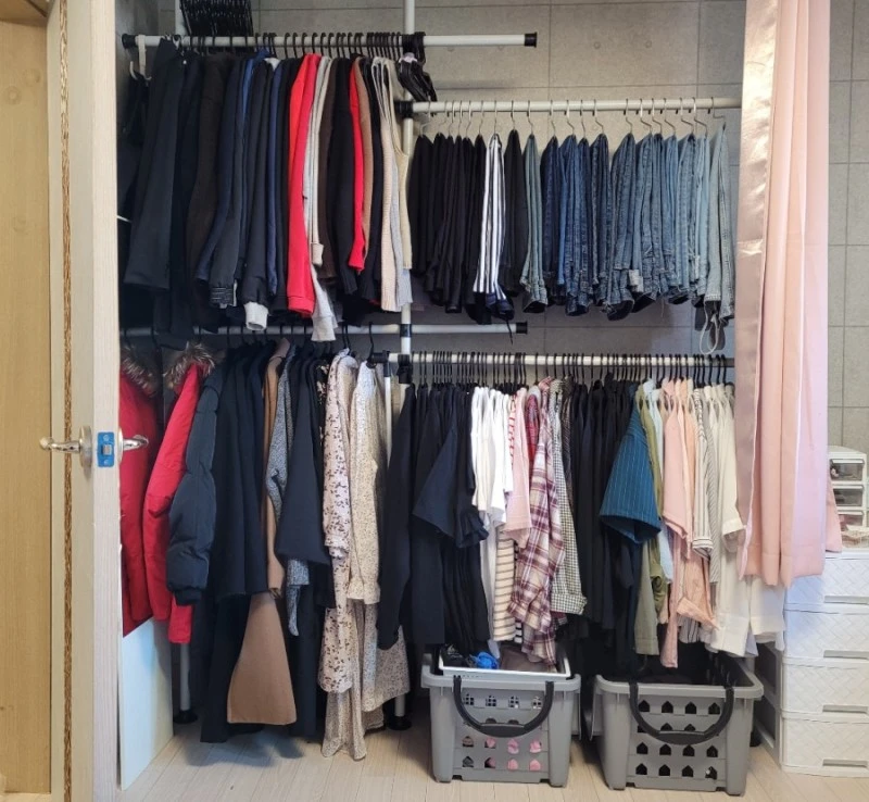 옷장이 많이 비좁을 땐 되도록 집게 사용은 지양한다 사용하더라도 빨래집게처럼 넓게 벌어지는 제품보단 조금만 벌어지는 제품을 쓰도록 한다