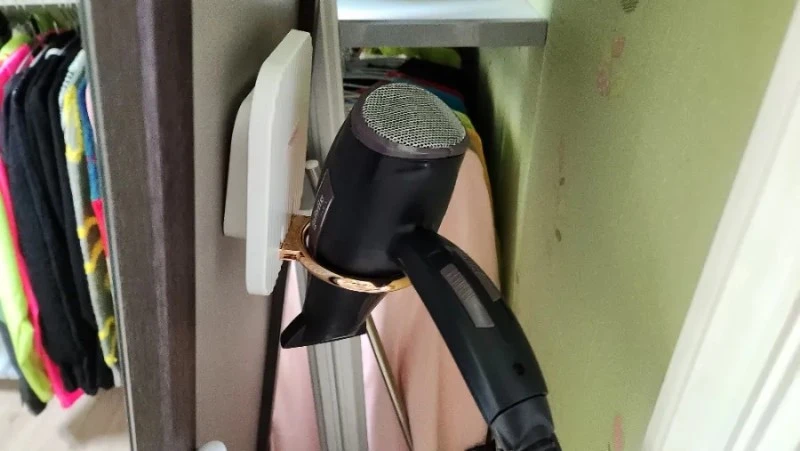 거울 뒤쪽에 달린 헹거를 이용해 입었던 옷을 걸어둘 수 있다 또한 콘센트 위치와 가까운 곳에 두면 드라이기 사용 후 쉽게 거치도 가능하니 화장대 없는 집에 강력 추천한다